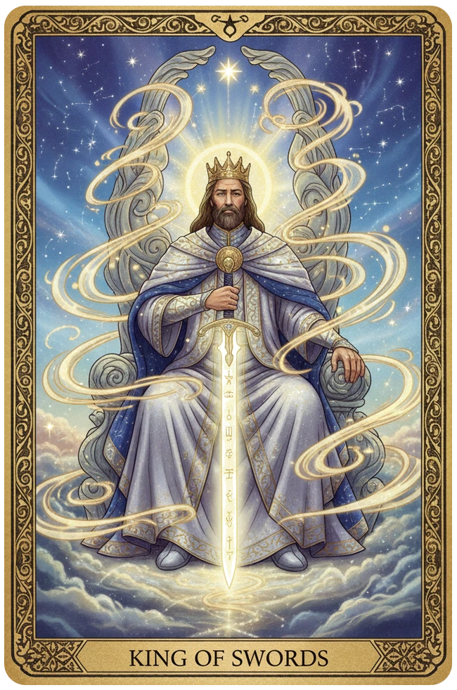 Интеллект на троне, меч как символ суда. Эмоции — за дверью, логика — превыше всего.