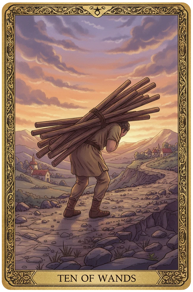 Взвалил на себя слишком много, и теперь идёшь, согнувшись. Цель близко, но груз тяжелее с каждым шагом. Возможно, стоило делегировать — но поздно.