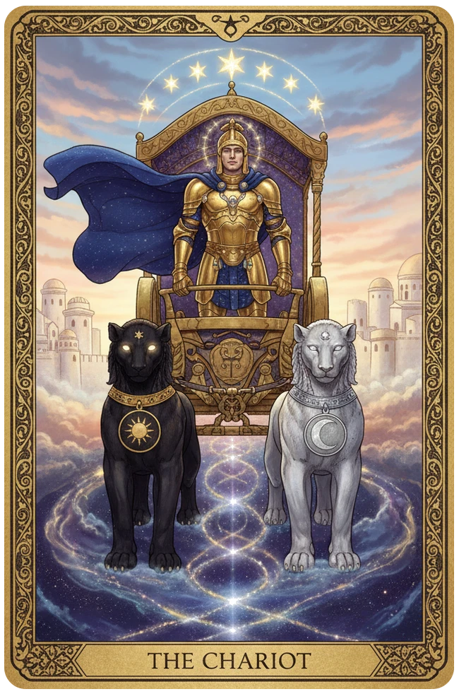 Победа требует направления воли, даже когда силы тянут в разные стороны. Ты держишь вожжи, и движение — это результат твоей решимости. Контроль не означает лёгкость — он означает готовность не сворачивать.
